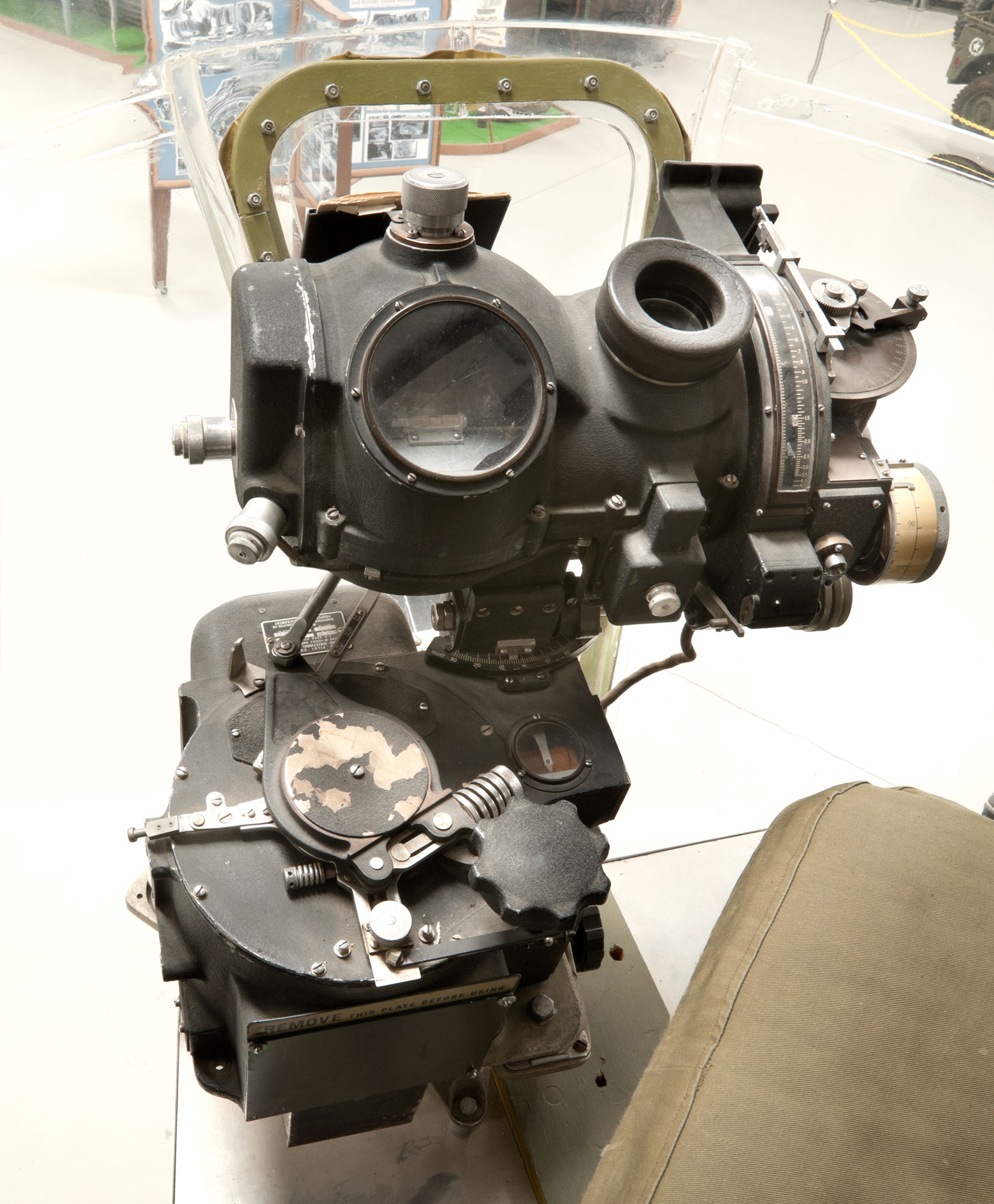 The bombardier sat in the forward center of the nose of the airplane. During the bomb run the bombardier had command of the airplane and took control through an autopilot connected to the Norton Bombsight. When not on the bomb run he was responsible for manning the twin .50-caliber machine gun chin turret.