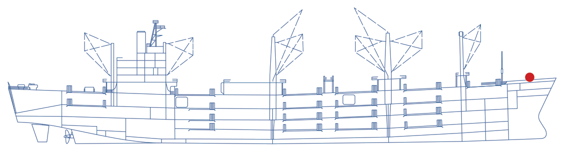 Main Deck - Bow. Initial view: looking aft at the anchor windlass machinery for the ship's two anchors.