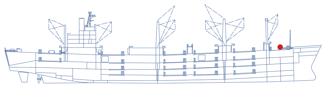 Main Deck - Bow. Initial view: looking forward at the anchor windlass machinery.