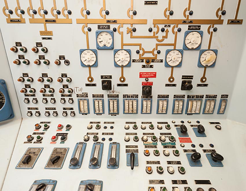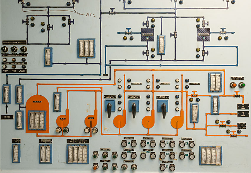 The main control console is a nerve center whose primary function is to monitor, display and control all the essential functions pertaining to the ship's nuclear reactor, propulsion system, and electrical power plant including related auxiliary systems.