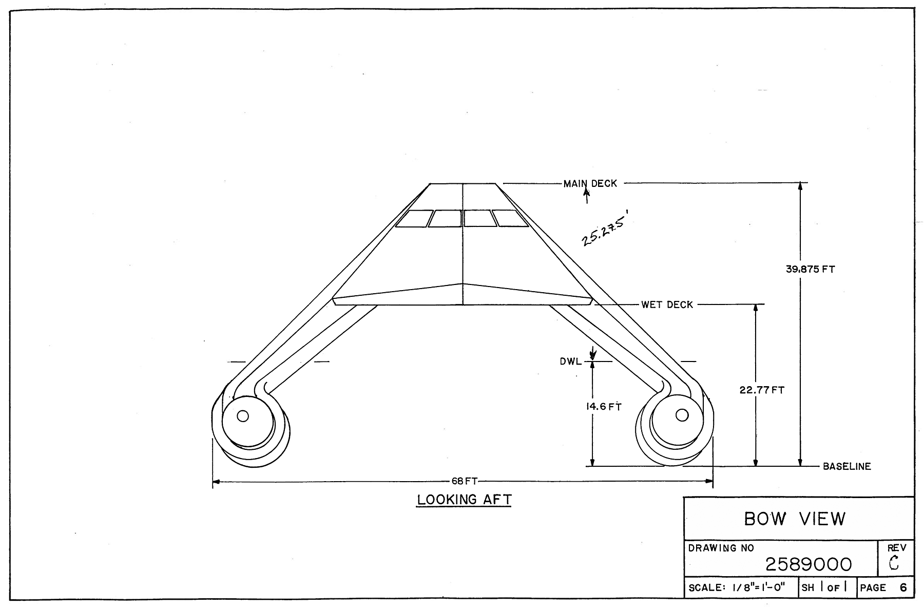 Highest point above waterline 97 feet (10 foot draft)