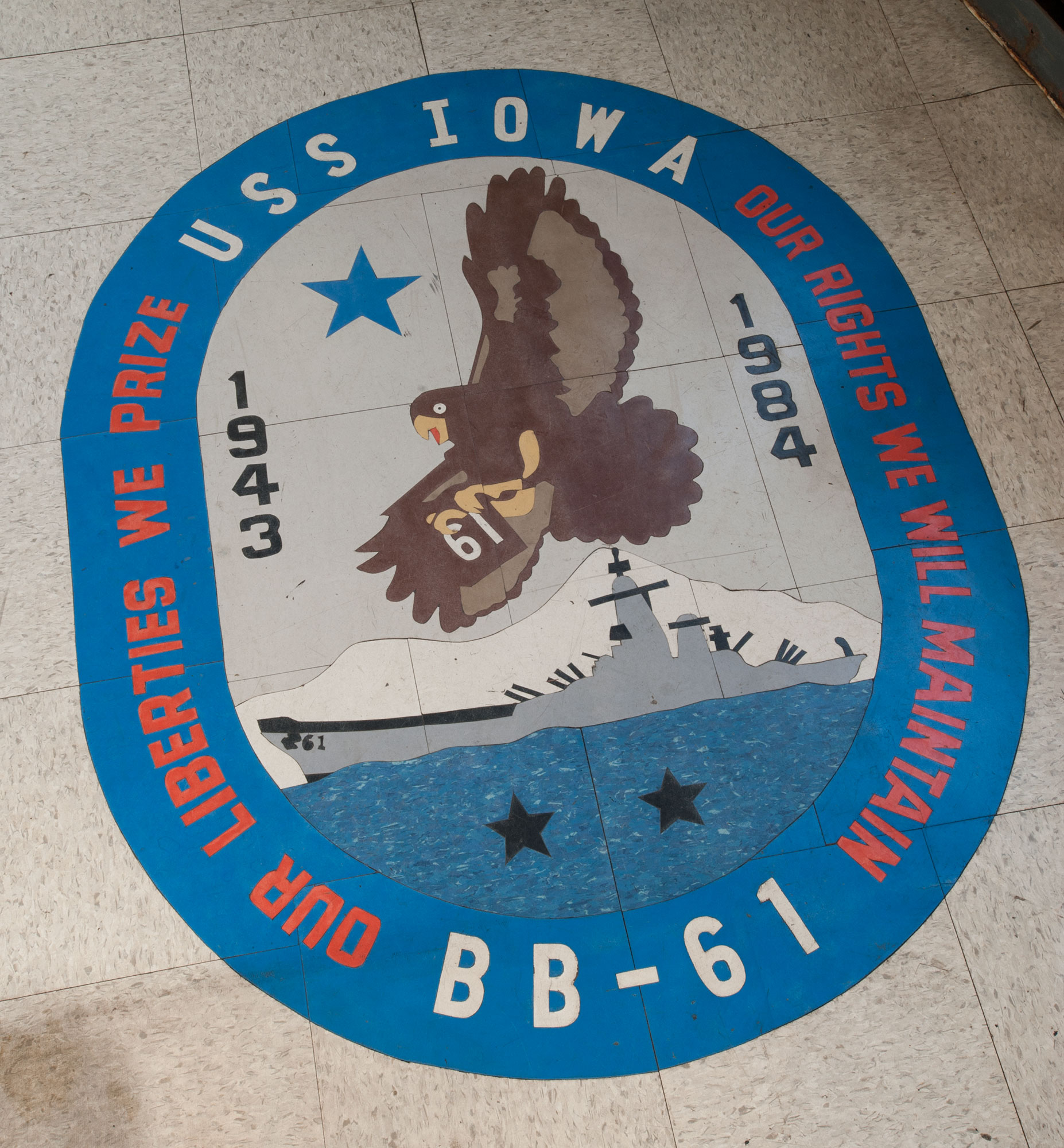 USS Iowa was decommissioned for the third time on October 26, 1990. Pacific Battleship Center was awarded custody on September 6, 2011 and opened as a museum in the Port of Los Angeles July 2012. [HNSA]