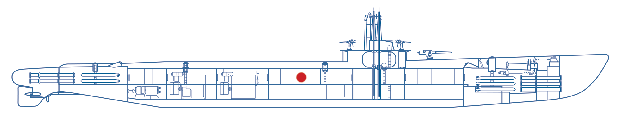 The large stainless steel structure on the port side is an ice cream freezer. It was extraordinary that such a small ship made room for the freezer. This may be the only luxury on the whole boat, but the Navy made every effort to provide the submariners the best food possible.