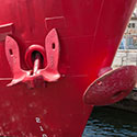 The structure with the portholes is the Wheelhouse or Pilothouse. Forward of the Wheelhouse is the foremast and by panning up the mast the gallery which served the original 375mm lens can be seen. Panning clockwise across the deck notice the white hatch to the forward hold and the two drum like objects which are the gipsy heads used for hauling in heavy line. The anchor chain passes through the spray shield which helps deflect any seas coming aboard over the bow in heavy weather.